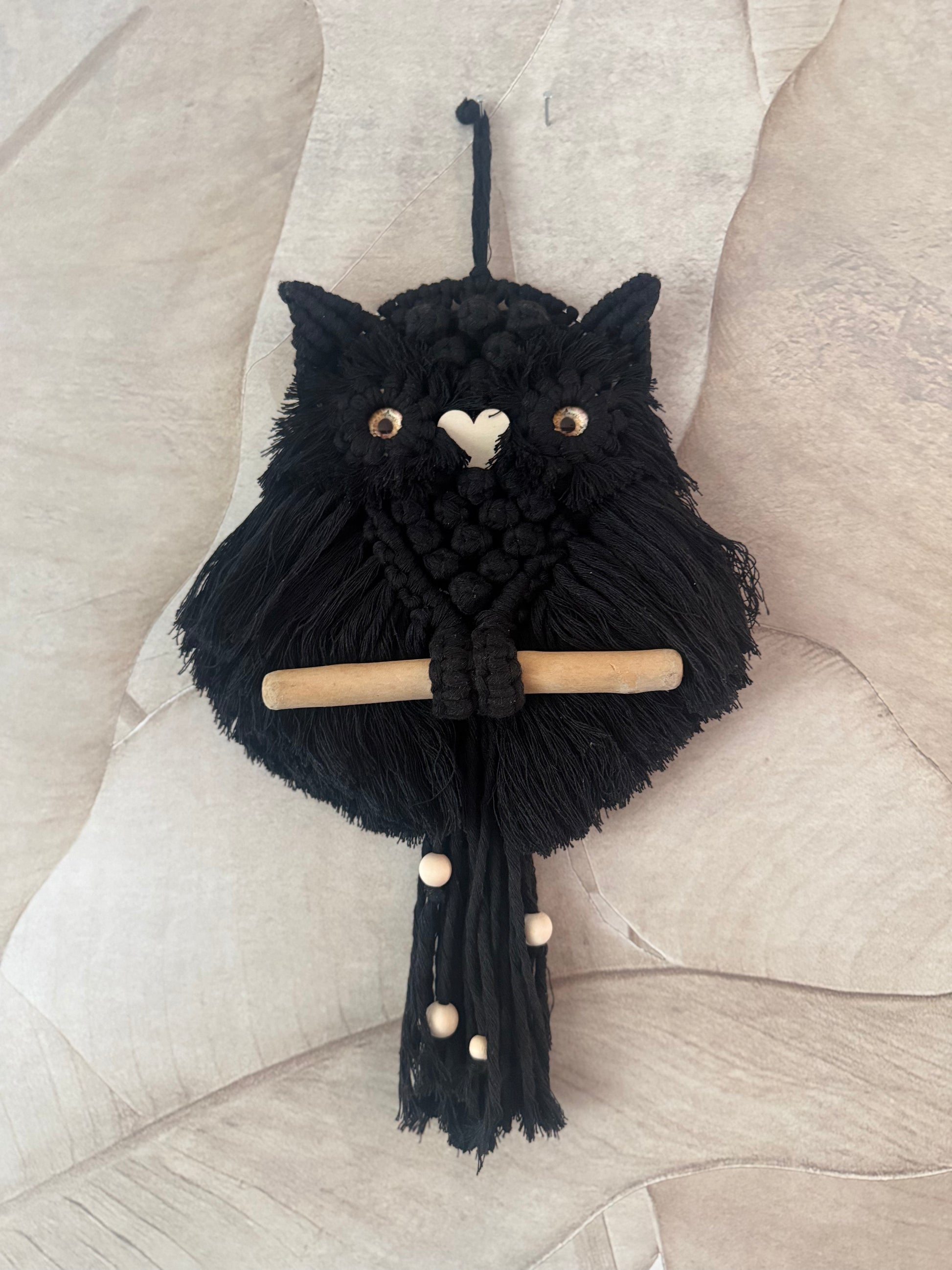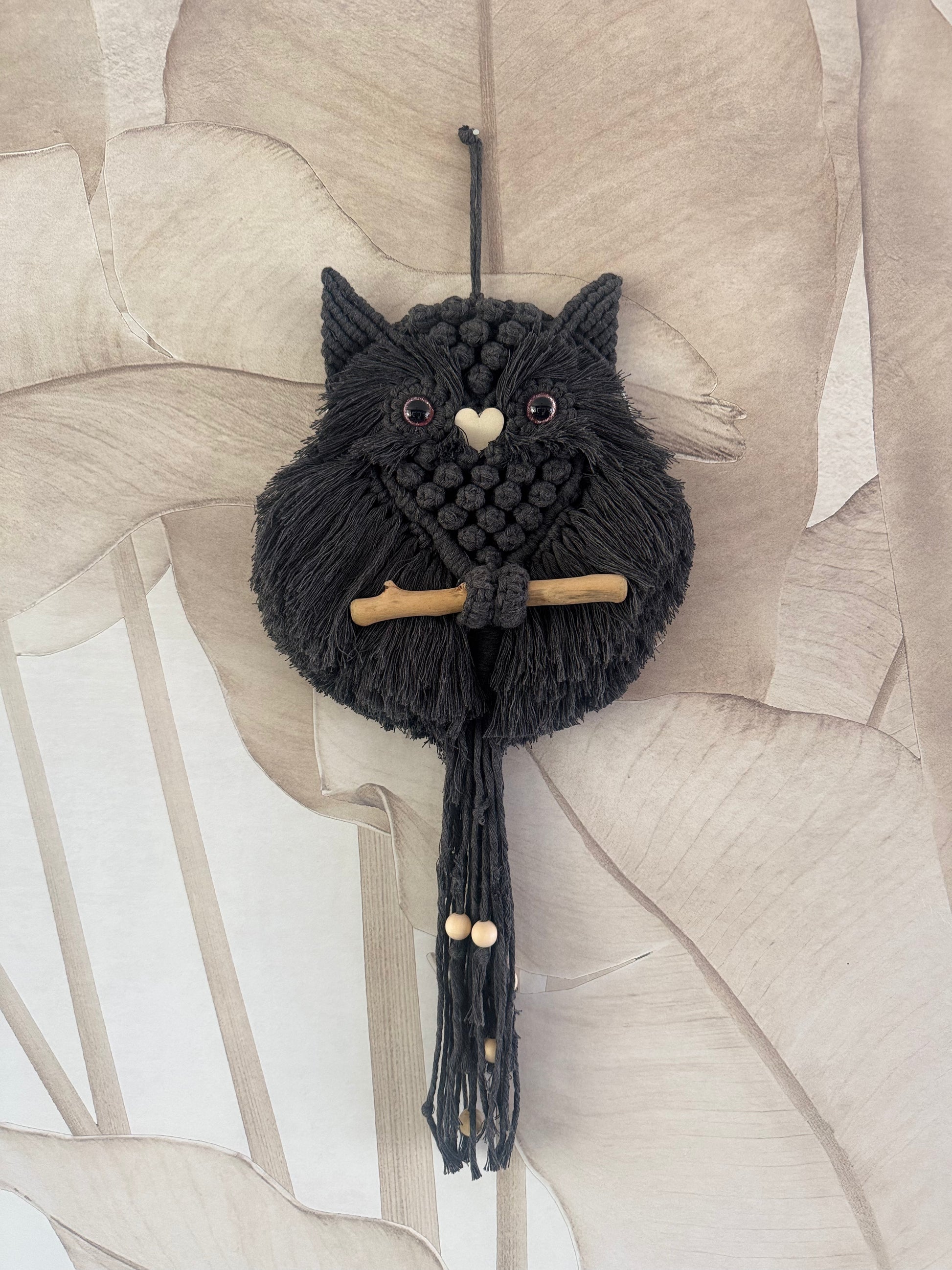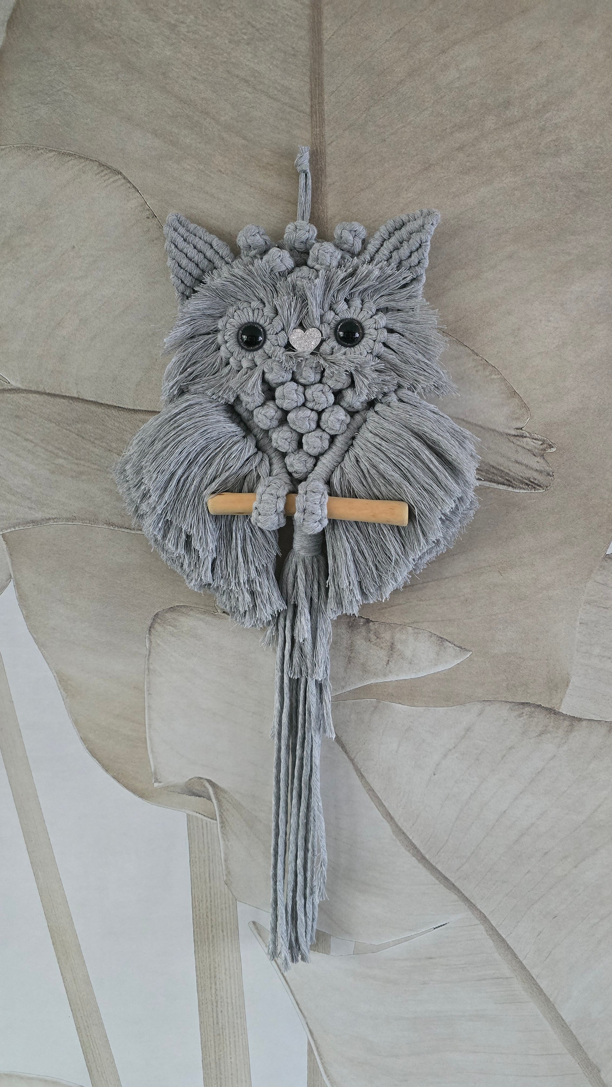 Maak een statement in je interieur met deze prachtige, handgemaakte macramé uil, volledig geknoopt van 100% hoogwaardig katoenkoord.